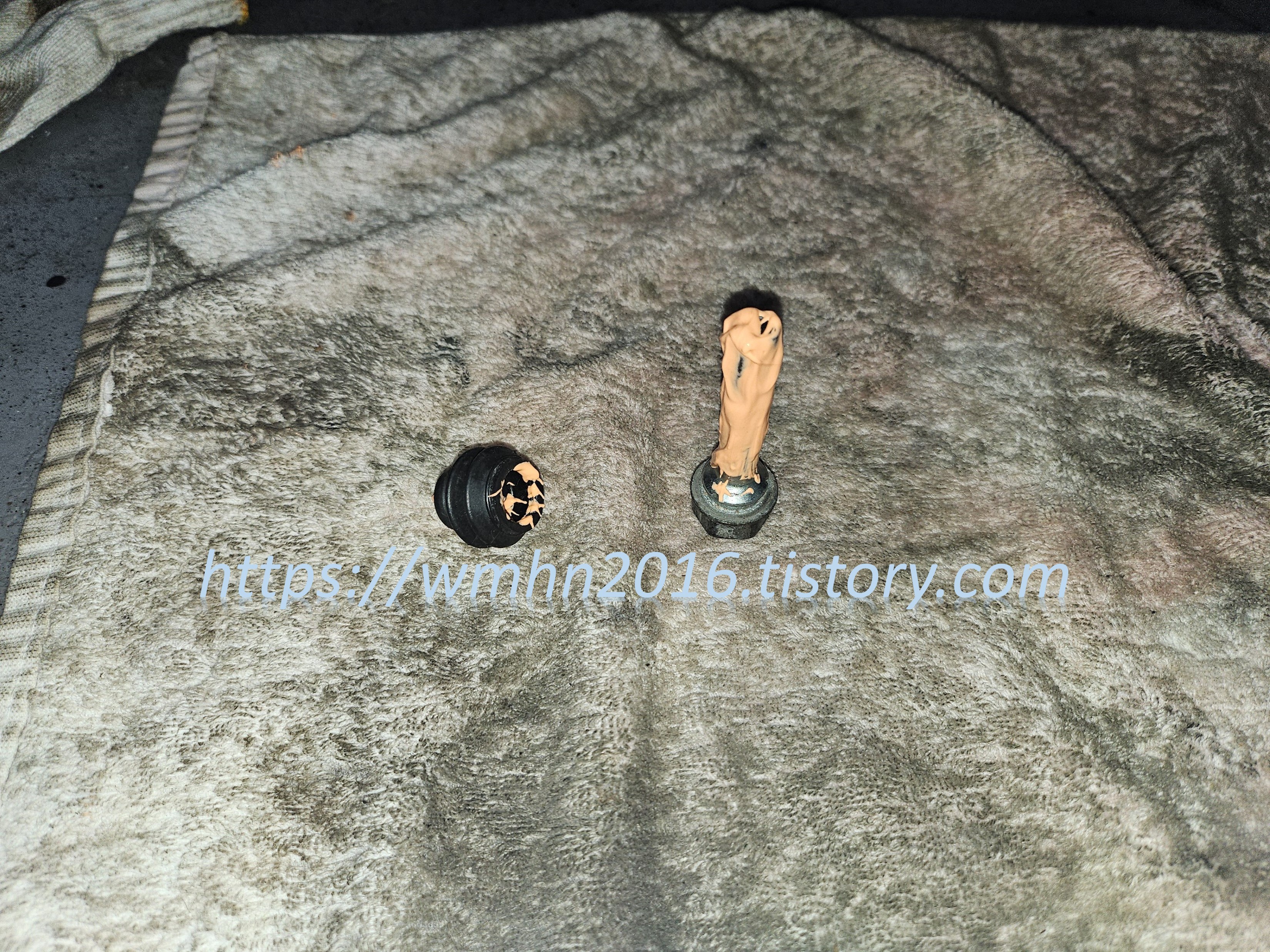 분리한 가이드 로드 및 고무부트 1쌍입니다. 분진 등이 붙어 많이 오염되어 있습니다.