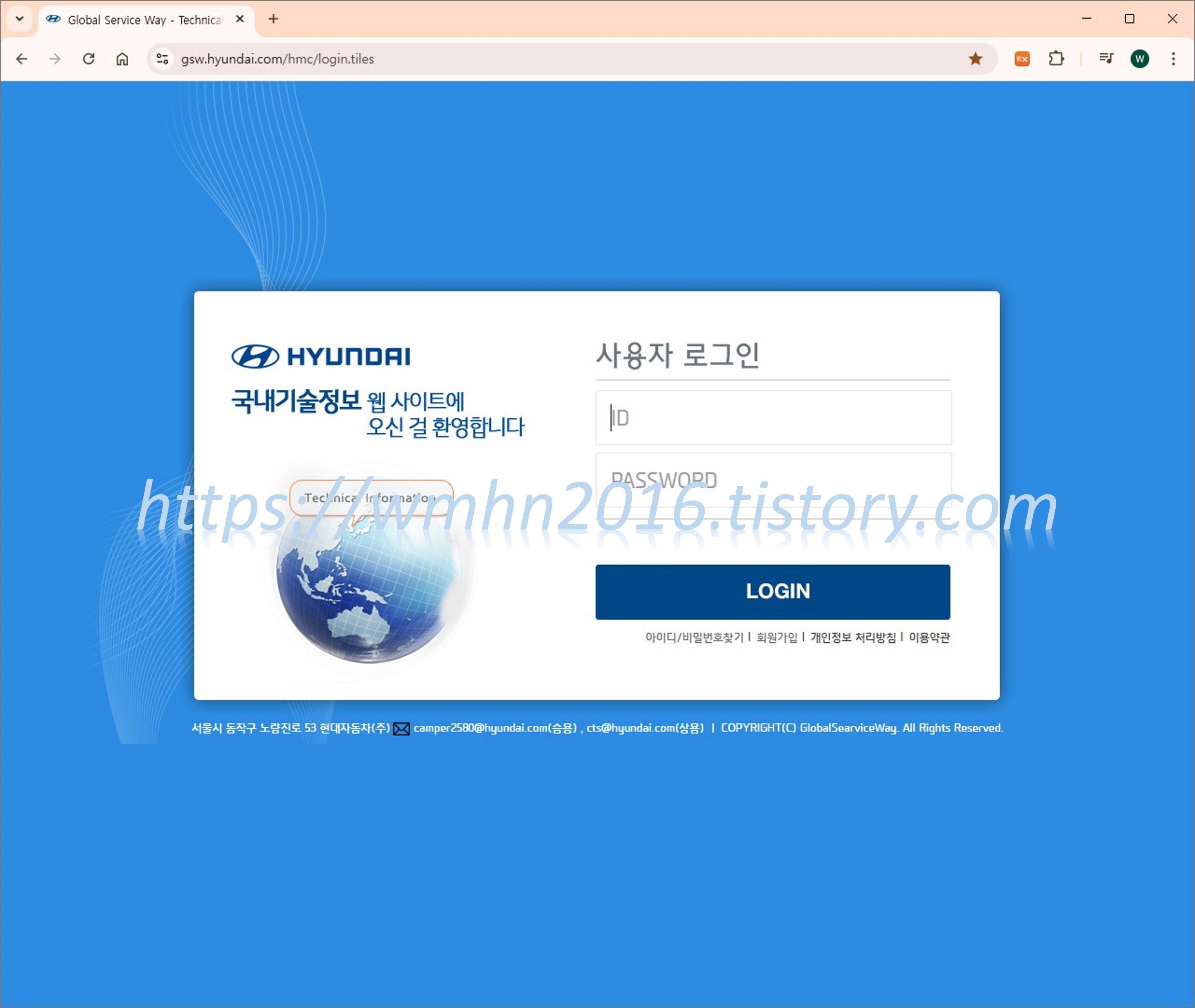 현대자동차의 국내기술정보 웹 사이트입니다. 회원가입을 통한 로그인을 하여야 합니다.