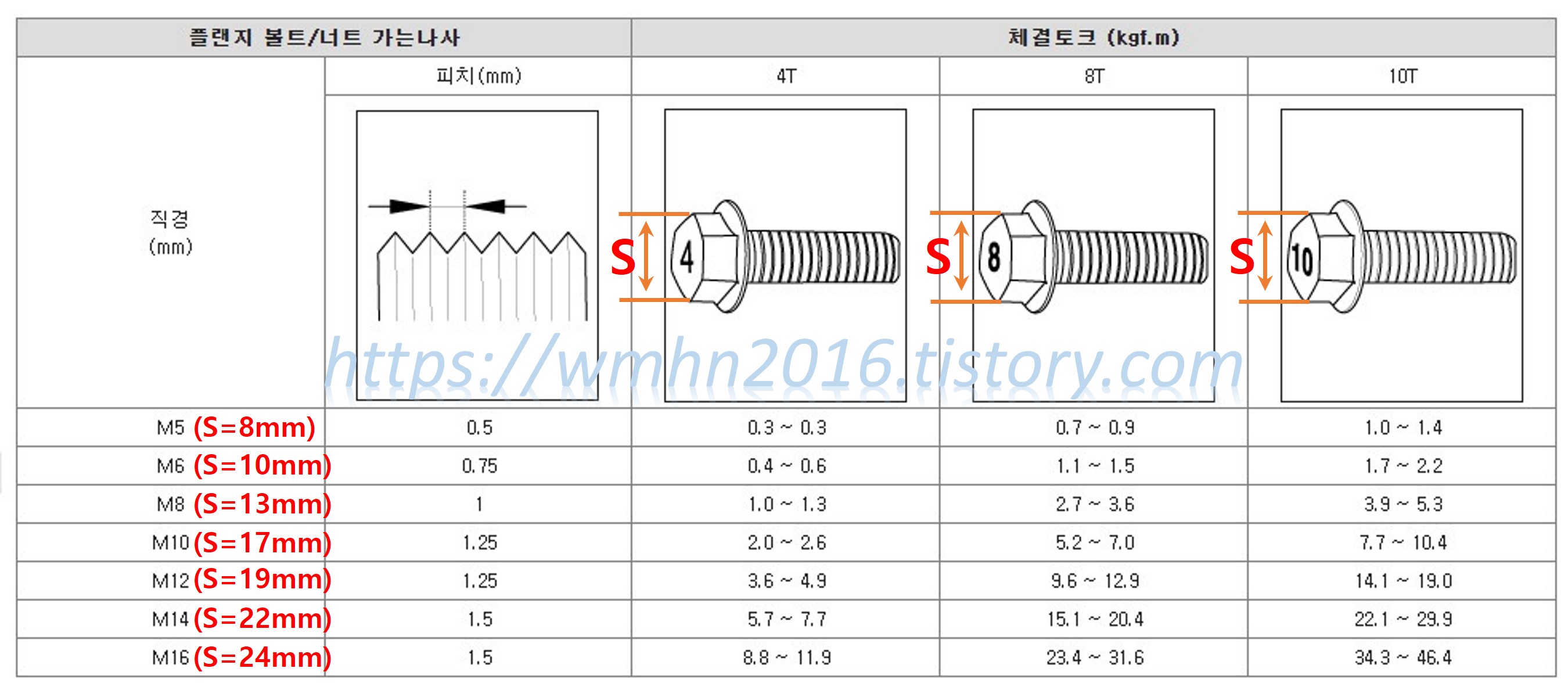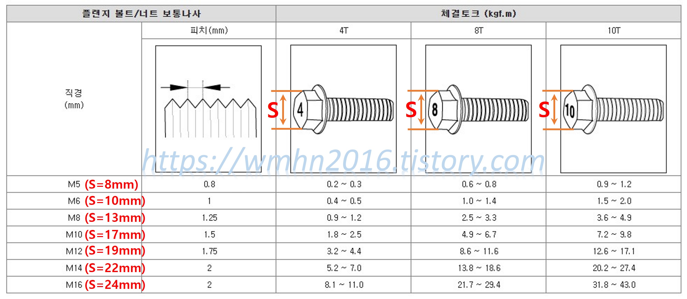 플랜지 볼트 및 플랜지 너트의 일반조임 토크