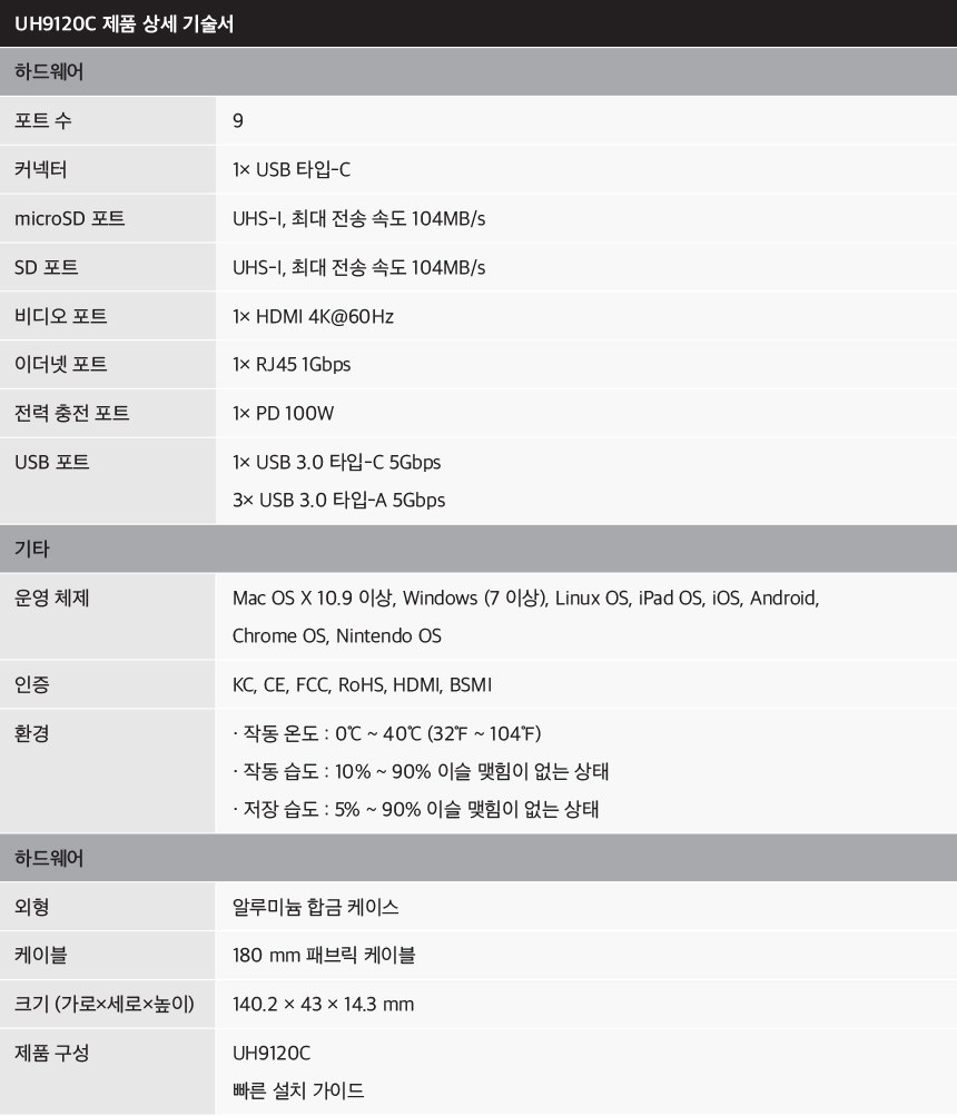 | 티피링크 USB C타입 9포트 허브 UH9120C의 사용설명서 등을 공유합니다. |